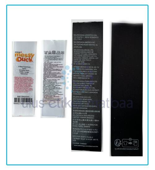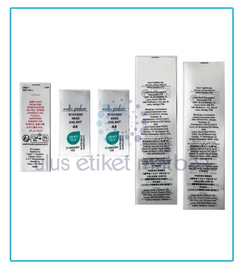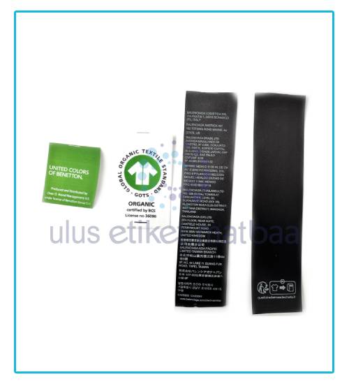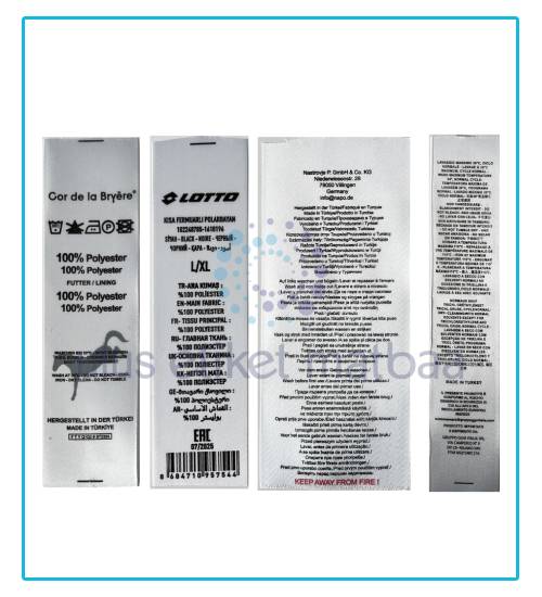 Yıkama talimatı etiketleri, tekstil ürünlerinde ürünün yıkama, kurutma ve ütüleme talimatlarını içeren önemli bir kategoridir. Bu etiketler, giysilerin ömrünü uzatmak ve kullanıcıları bilgilendirmek amacıyla kullanılır. "Japon Akmaz" veya "İngiliz Saten" vs. isimlerle bilinen bu etiketler, yıkama dayanıklılığına ve kumaş türüne göre çeşitlere ayrılır.
