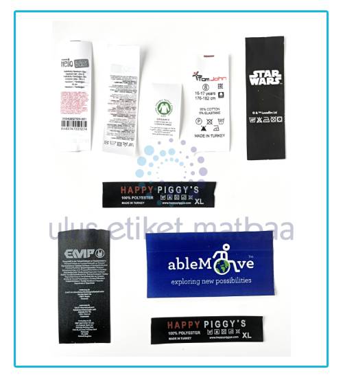 Yıkama talimatı etiketleri, tekstil ürünlerinde ürünün yıkama, kurutma ve ütüleme talimatlarını içeren önemli bir kategoridir. Bu etiketler, giysilerin ömrünü uzatmak ve kullanıcıları bilgilendirmek amacıyla kullanılır. "Japon Akmaz" veya "İngiliz Saten" vs. isimlerle bilinen bu etiketler, yıkama dayanıklılığına ve kumaş türüne göre çeşitlere ayrılır.